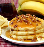 Brush large nonstick skillet lightly with vegetable oil and heat over medium heat. Working in batches, add batter to skillet by scant ¼ cupfuls. Cook until bubbles appear on surface of pancakes and undersides are golden brown, about 2 minutes. Turn pancakes over and cook until golden on bottom, about 2 minutes. Brush skillet lightly with vegetable oil as needed before adding each batch. Transfer pancakes to plates. Serve with additional maple syrup.
